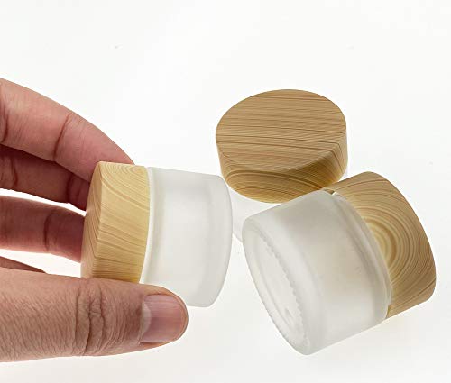 VASANA 3PCS Empty Refillable Glass Cosmetic Jars Face Cream Lip Balm Storage Containers Bottles with liners and Wood Grain Lids for Make Up Scrubs Oils Salves Creams Lotions