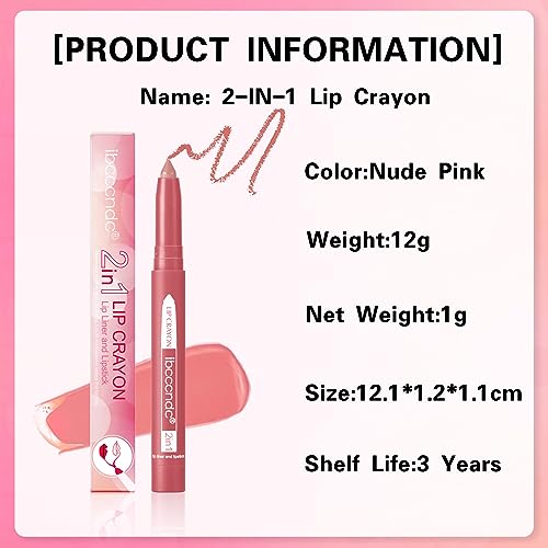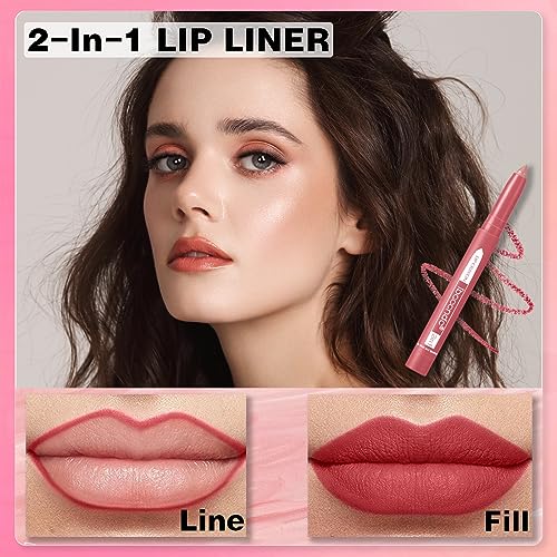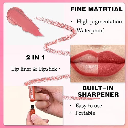 Waterproof Lip Liner, Creamy Nude Lip Liner and Lipstick Set, 2-In-1 Matte Lip Liners Lip Crayon Pen Built-in Sharpener, Non-fading Long Lasting Lip Stick & Lipliner Pencil for Women