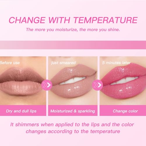 2PCS Magic Color Changing Moisturizing Lip Glow Oil,Long Lasting Hydrating Lip Gloss,Lip Balm Transparent Lip Care,Moisturizing Lip Oil for Lip Treatment and Dry Lips,Liquid Lipstick Makeup Cosmetic