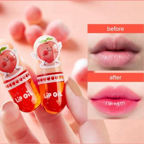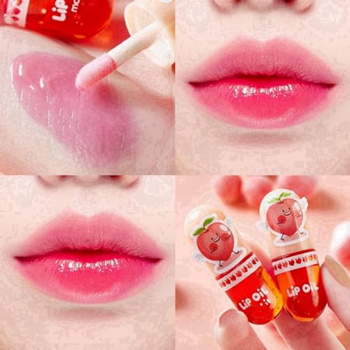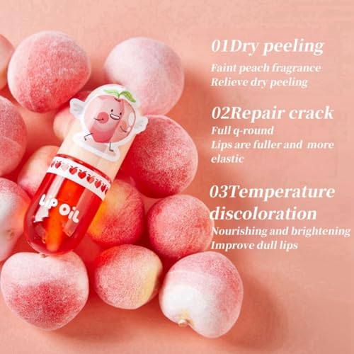 3Pcs Hydrating Lip Oil,Plumping Lip Gloss Set,Hydrating Plumping Lip Gloss,Temperature Color Changing Lip Oil,Moisturizing Glossy Lip Oil Tinted,Peach Moisturizing,Clear Lip Gloss,Plumping Lip Oil