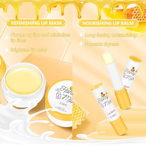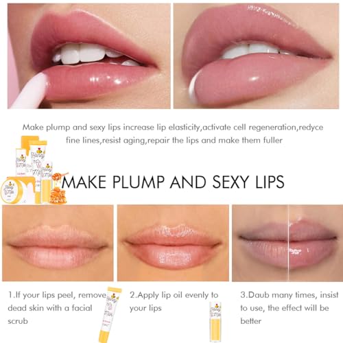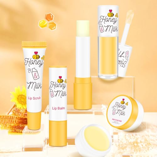 4PCS Lip Care Set – Lip Mask Lip Balm Lip Scrub Lip Oil, Honeybalm Sleeping Mask Lip Scrub Exfoliator Lip Repair Sets, Moisturizing Hydrating Reduce Lip Lines Lip Balm Set for Dry Peeling Cracked Lips