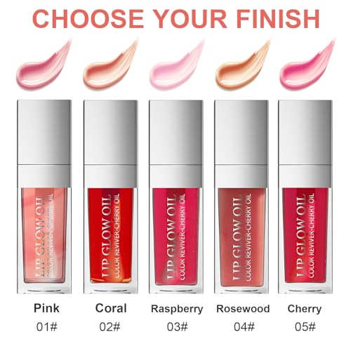 Ceboic Hydrating Lip Glow Oil, Moisturizing Lip Oil, Long Lasting Plumping Lip Gloss Non-Sticky Transparent Toot Lip Balm, Tinted Lip Prevents Lip Lines and Dry Cracked Lips (Raspberry)