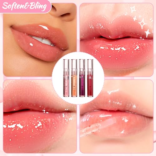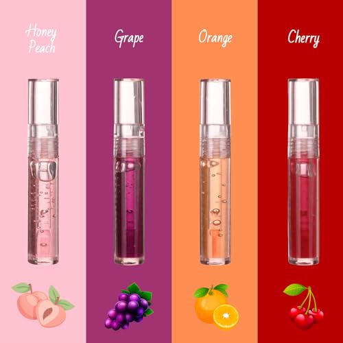 Discover Clear Shiny Lip,4Pcs Sparkly Fruits Flavored Lip Oil Balm for glowing, hydrated lips. Perfect for dry, chapped lips. A must-have for women and girls.