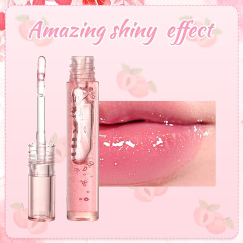 Clear Shiny Lip,4Pcs Sparkly Fruits Flavored Lip Oil Balm Glowing Crystal Hydrating Lip Oil Jelly Moisturizing Lip Balm Transparent Liquid Lipstick Lip Care for Dry Chapped Lip Women Girls