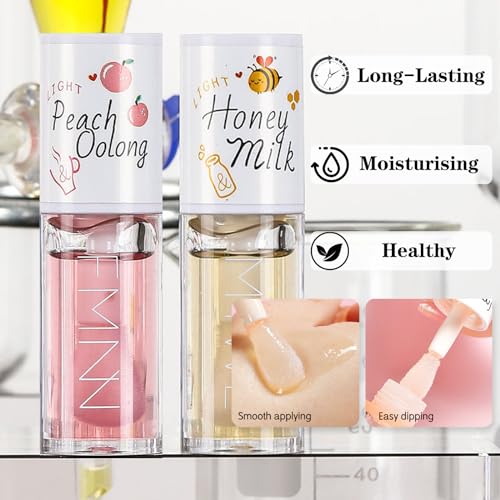 Hydrating Lip Oil Set, Long-lasting Clear Lip Gloss Set For Teenage Girls, Fruit Flavoured Lip Oil Plumping & Moisturizing, Lip Glow Balm Liquid Lipstick for Women Lip Care (2PCS)