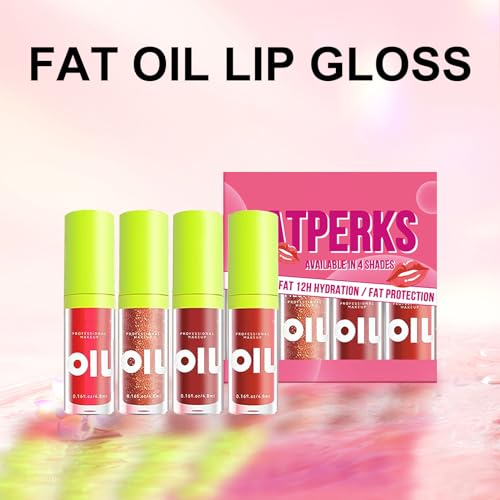 Leogony 4PCS Fat Oil Lip Gloss Set, Tinted Lipgloss, Clear Lip Oil for Girls Women Gift, Lip Plumping Moisturizing Long Lasting Non-Sticky