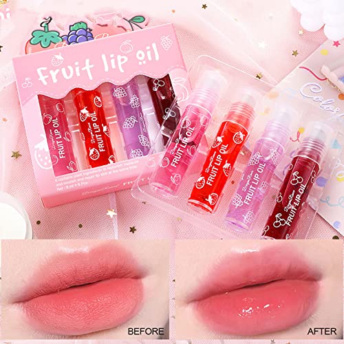 Lip Oil Set, Clear Lip Gloss Sets For Teenage Girls Fruit Liquid Lipstick,Moisturizing Lip Balm Long Lasting Lip Glow Oil Lip Care, Gifts For Girls Dry And Chapped Lips