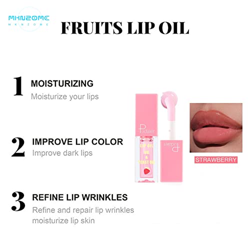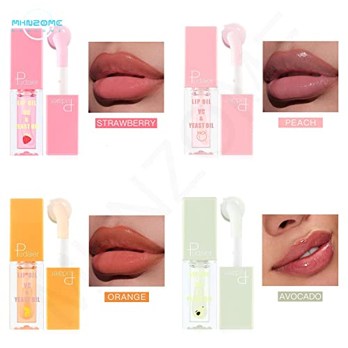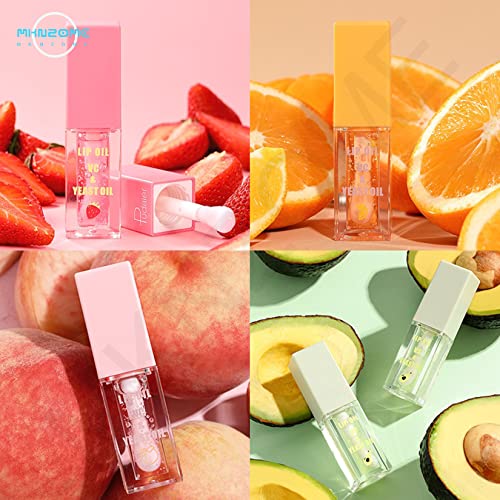 Lip Oil Tinted, MKNZOME 4 Flavoured Moisturizing Fruity Lip Glow Oil Plumping Lip Gloss Non-sticky Lip Plumper Tinted Lip Balm Lip Care Make Up Gifts for Women Girls Daily Lip Care Repairing Hydrating