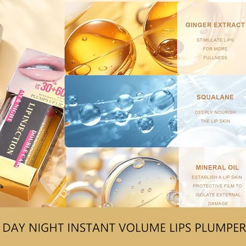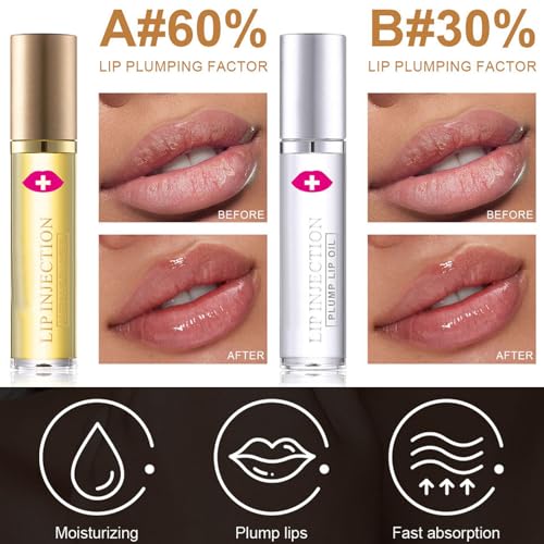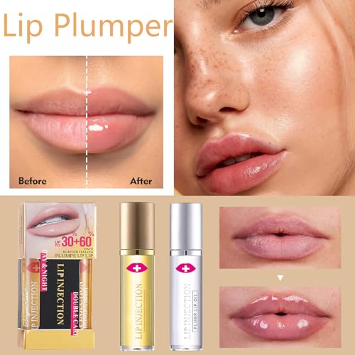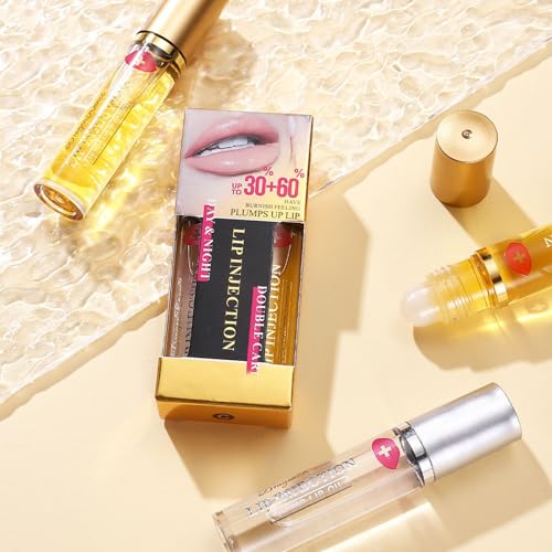 Lip Plumper Natural Lip Plumper and Lip Care Serum, Volumizing Lip Gloss Plumping Lip Oil Set, Lip Enhancer Full Lips Plumper Day & Night Moisturizing Repair Lip, Hydrating & Reduce Lip Lines