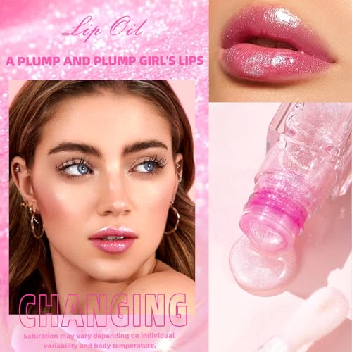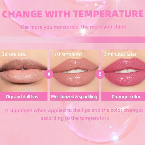 Magic Color Changing Lip Oil,Color Changing Tint Lip Oil,Shimmer Lip Gloss Moisturizing Hydrating Gloss for Women, Glitter Shine Non-Sticky FInish,12 Hours Hydrating Lip Glaze Makeup