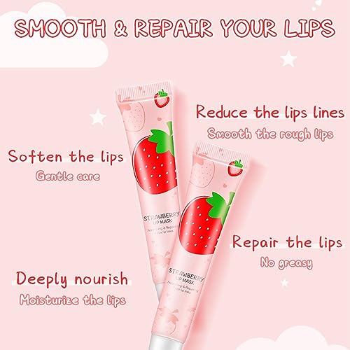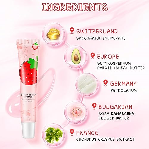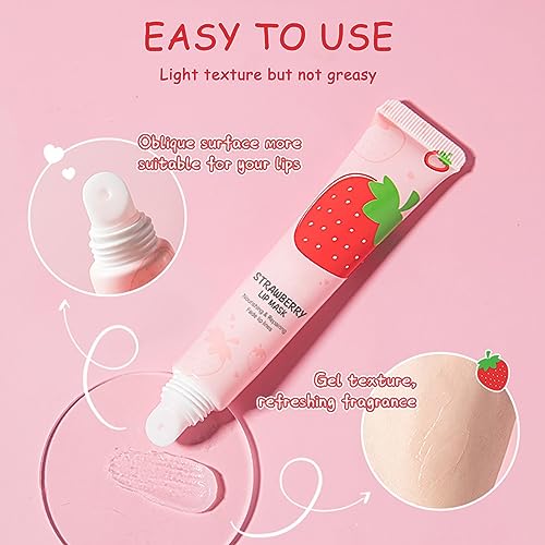 Moisturizing Lip Balm, Overnight Strawberry Lip Mask, Skincare Lip Oil, Chapstick Locks In Moisture Lip Care, For Hydrated, Full Looking & Irresistible Lips, Softens & Adds Shine, 24h Hydration