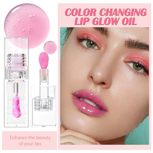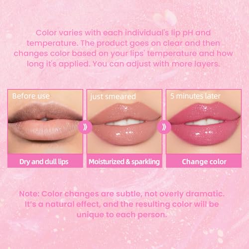 Prreal 2PCS Colour Changing Lip Oil, Shimmer Lip Glow Oil with Big Brush, Hydrating Temperature Colour Change Lip Gloss Lip Balm, Long-Lasting Lip Oil Tinted for Lip Care (01+02) is a must-have beauty essential. This innovative lip oil provides a personalised tint that adjusts to your unique body temperature, resulting in a custom shade that enhances your natural beauty.