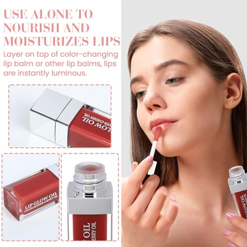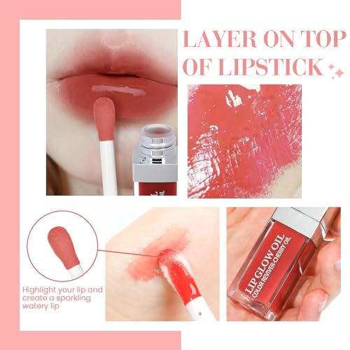 Rose Tinted Lip Glow Oil,Plumping Lip Gloss Clear Jelly Moisturizing Lip Glow Oil Hydrating Lip Care Toot Lip Oil for Dry Lips Care Nourishing Water Glossy Shine Lip