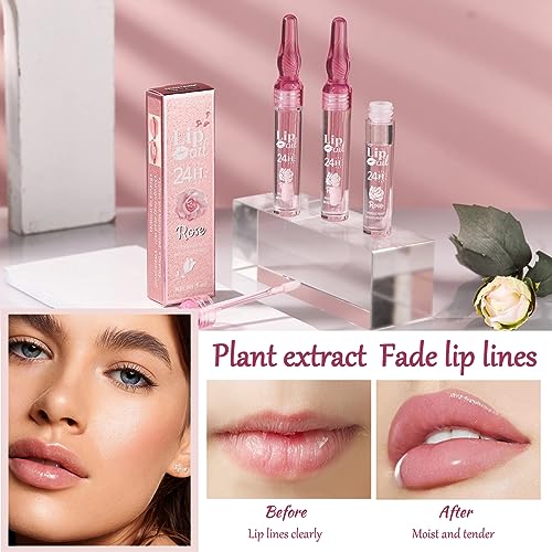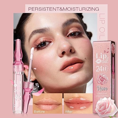 Tbeautfave Rose Clear Lip Gloss, Hydrating Lip Oil, Lip Plumper Gloss Moisturizing Lip Lotion Oils, Shiny Gloss Non-Sticky Lip Glow Oil,Lip Oil For Dry,Reduce Lip Wrinkle