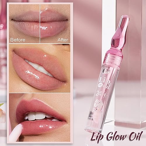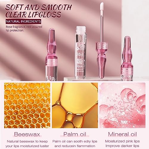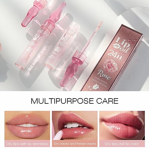 Tbeautfave Rose Clear Lip Gloss, Hydrating Lip Oil, Lip Plumper Gloss Moisturising Lip Lotion Oils, Shiny Gloss Non-Sticky Lip Glow Oil, Lip Oil for Dry, Reduce Lip Wrinkle