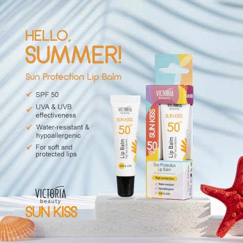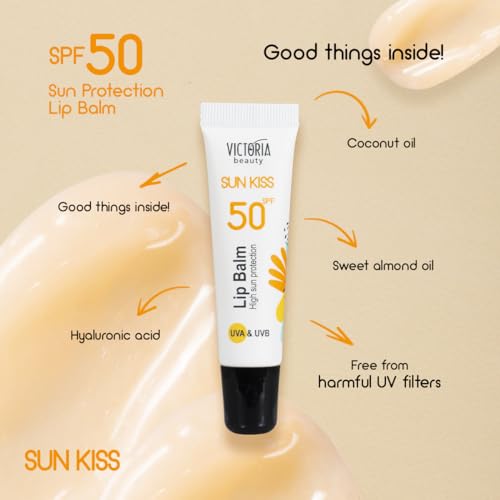 Victoria Beauty Sun Kiss SPF 50 Lip Balm – Lip Sunscreen with Coconut Oil, Sweet Almond Oil, and Hyaluronic Acid, 10ml