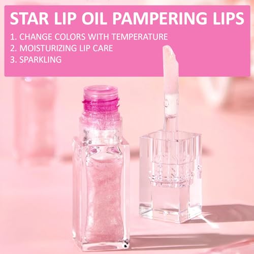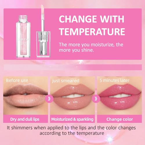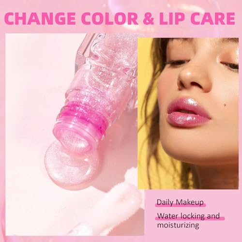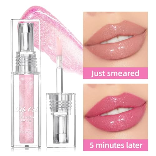 XdealCozyxc 2PCS Magic Colour Changing Lip Oil, Long Lasting Moisturizing Non-Sticky Fresh
