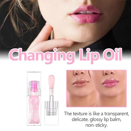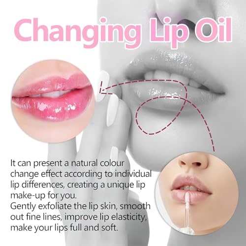 XdealCozyxc Magic Colour Changing Lip Oil, Plumping Gloss Tinted Long Lasting Moisturizing Non-Sticky