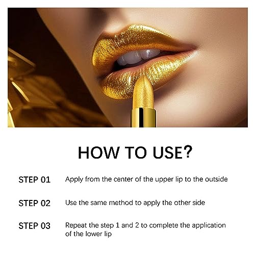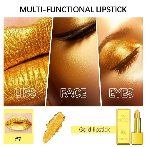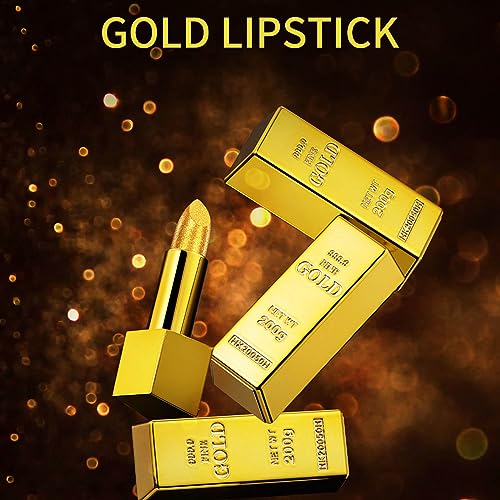 Gold Lipstick Metallic Glitter Lipstick Gold Bar Design Bold Colour Long-Lasting Full Coverage Lip Luxurious Premium Metallic Lipstick