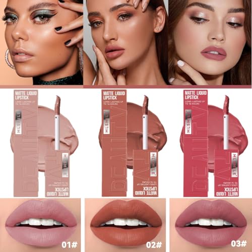 KARLOR 3 PCs Matt lipstick Set pink nude tones lipstick set liquid lipstick liquid lipstick Kit smooth moisturizing lip gloss pink red lipstick 24 hours Long Lasting waterproof