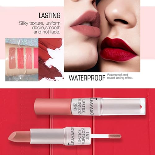 Dive into a world of vibrant, lasting colour with our double matte lip gloss set. Featuring a two-in-one durable waterproof coral red lip glaze, this product offers a dual finish: a smooth matte lipstick and an equally stunning, high-shine glossy appearance. Its advanced formulation ensures your lips stay moisturised, preventing any dryness while maintaining a non-stick cup finish. Perfect for any occasion, this double matte lip gloss is designed for longevity, ensuring your look remains flawless from morning until night.