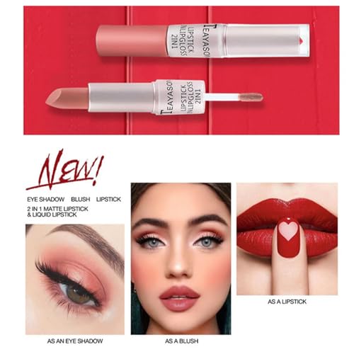 Matte lipstick, Double matte lip gloss, Two-in-one durable waterproof coral red lip glaze, Moisturizing non-stick cup, Dry texture, and smooth lip cosmetic matte lipstick comes in two enticing variations: a warm coral hue for a more subdued look and a bold, vivid coral for a statement effect.