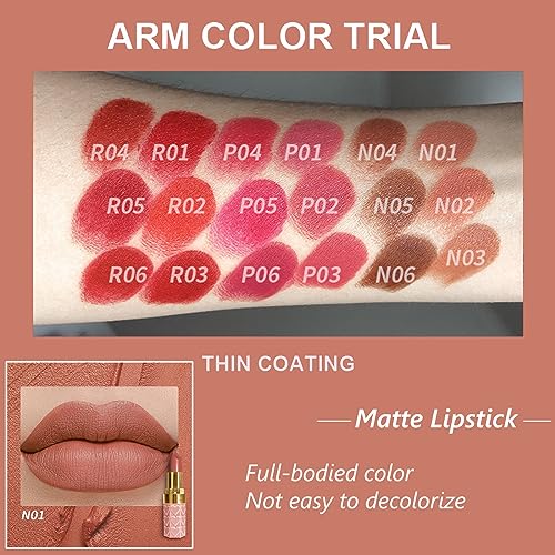 Nude Lipstick, Matte Velvet Lipsticks Waterproof Lip Stick, Long Lasting Smooth Cream Texture Pink Lipstick Rich Colour No Easy Fade Lightweight Lipsticks For Women (N01)