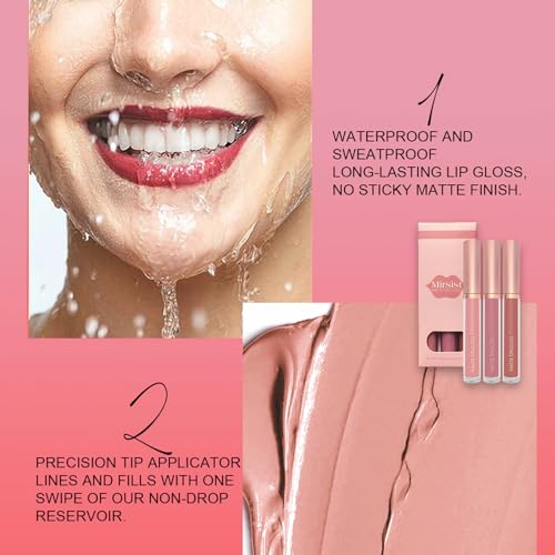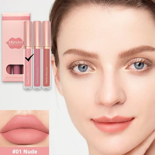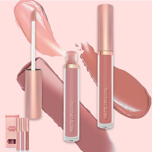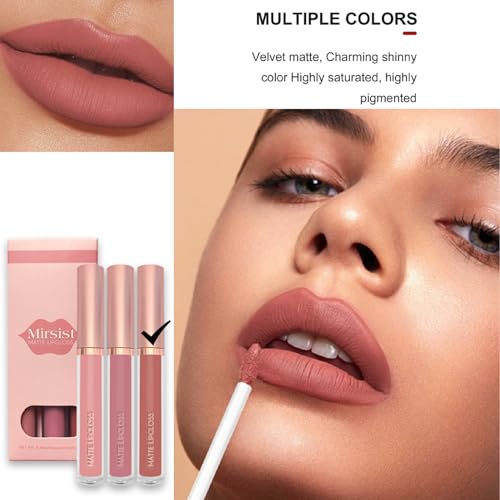 Nude Matte Lipstick Set, Lip Gloss Sets Liquid Lipsticks Long Lasting Non Stick Cup Waterproof Smooth Velvet Pink Moisturizing Lip Stain for Women Makeup