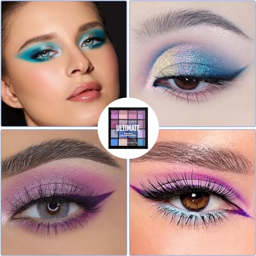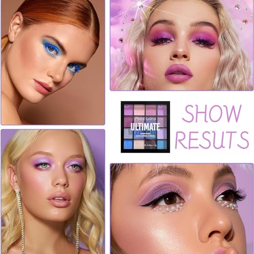16 Colors Eyeshadow Palettes, Rainbow Colour Makeup Pallet, Purple Glitter Eyeshadow Palette Create Sparkling Makeup Look, Professional Long Lasting Eye Shadow for Party Makeup and Daily Makeup