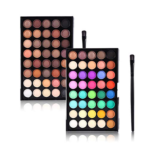 40 Colors Eyeshadow palettes with brush set,Eye Shadow Matte ShimmerS Makeup Palette Highly Pigmented Colorful Powder Long Lasting Waterproof(#2)