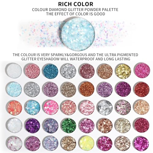 40 Colors Glitter Eyeshadow Palette,Eyeshadow Palette Makeup Set,Colorful Makeup Palette Sparkle Shimmer Highlighter Metallic Eye Shadow Travel Size Makeup,Shimmer Speckled High Pigmented