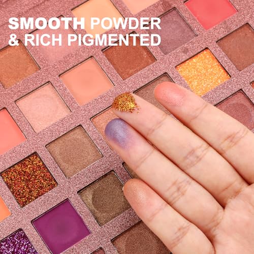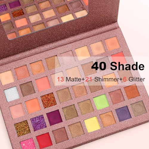 Boobeen Colorful Eyeshadow Makeup Palette – 40 Colors Highly Pigmented Natural Eye Shadow Powder Matte, Shimmer, Glitter, Bright Eyeshadow Palettes, Blendable Long Lasting