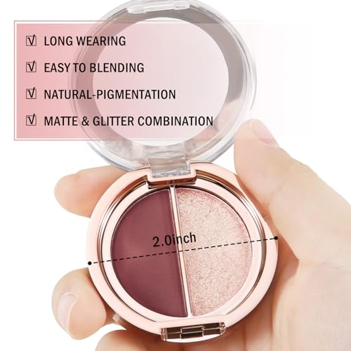 Boobeen Double Color Eyeshadow Palette, Matte & Shimmer Metal Eye Shadow Powder, Color Eye Shadow Blendable, Ultra Pigment Long Lasting Eye Makeup Palette