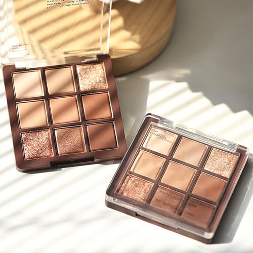 Brown Eyeshadow Palette, Matte & Glitter Nude Cream Eye Shadow Palettes Long Lasting 9 Colour Multipurpose Bronzer Contour Highly Pigmented Neutral Eyeshadows for Women Girls Eye Makeup Gift