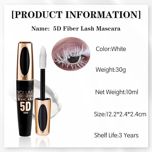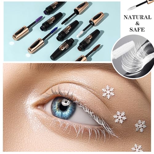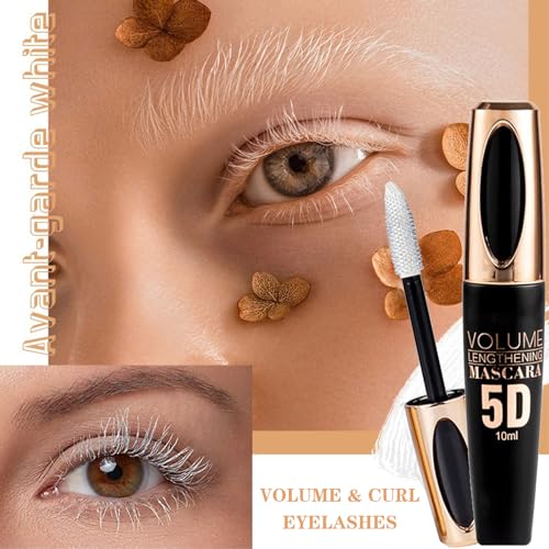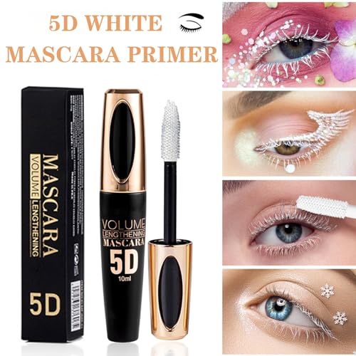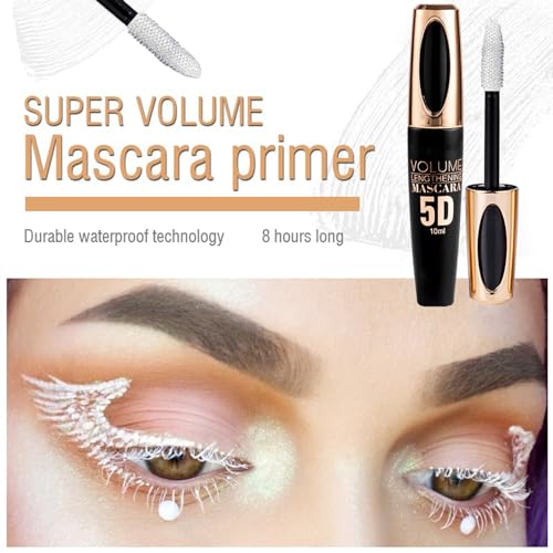 Colorful Mascara, 5D White Primer Mascara, Long-lasting Waterproof Fiber Lash Mascara to Volume & Curl Eyelashes, Smudge-proof and Highly Pigmented White Eyes Makeup for Girls