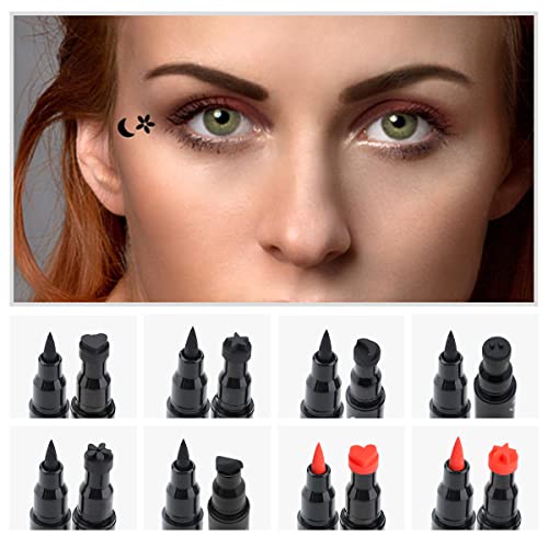 Eyeliner Stamp, Star Eyeliner Stamp, Star/Heart/Moon/Flower Waterproof Liquid Eyeliner Pen All Day Long-Lasting Eyeliner Liquid Black & Smudge-proof Makeup Liquid Eye Liner Stamps, Star