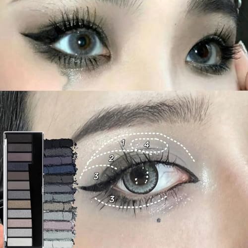 Grey Eyeshadow Palette Black Eyeshadow 12 Pigmented,Smokey Eyeshadow Palette 12 Shades,Waterproof Eye Shadow Pallets for Women,Shimmer Smokey Color Eyeshadow,Full Matte Smokey Eye Shadow Pallets