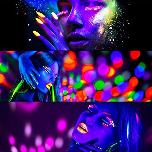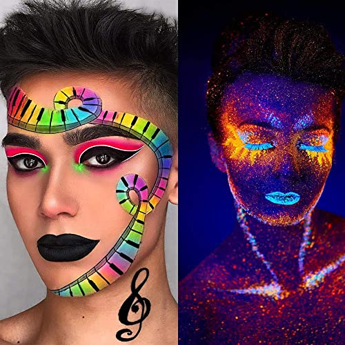 The Kalolary Neon Luminous Eyeshadow Palette, UV Glow Blacklight Matte and Sparkling Eyeshadow Glows in the Dark, brings dynamism to your makeup routine. Featuring 24 diverse colours, this palette balances vivid matte shades with scintillating sparkles, designed to stand out both in daylight and under UV blacklights. Its high pigmentation guarantees intense and long-lasting coverage. Ideal for parties, festivals, or creative looks, it transforms ordinary makeup into extraordinary art. Comes with four professional black brushes to help you craft flawless applications. Illuminate your style with this versatile and radiant kit, promising superior quality and breathtaking results.