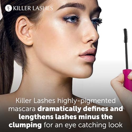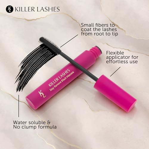 Killer Lashes Easy Remove Black Mascara with Moisturizing Formula for Fuller & Longer Lashes | Smudge Proof Mascara for Volume & Length, 1 Count (120 Days Supply)