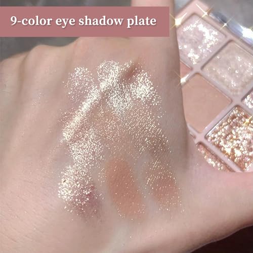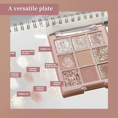 LFCFBH 9 Colors Shimmer Eyeshadow, Natural Glitter Eyeshadow Palette for Women, Highly Pigmented