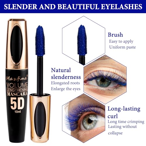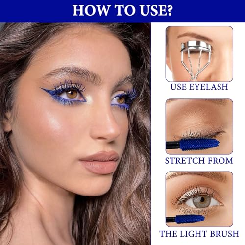 LINXINS Blue Mascara for Eyes, Telescopic Mascara Waterproof, Waterproof 4D Silk Fiber Coloured Lash Mascara Blue, Blue Mascara Long Lasting Thick, Smudge-Proof Fiber Mascara