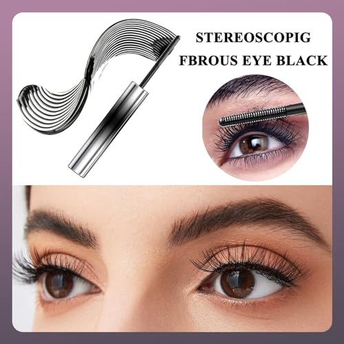 Mascara 3PCS,3D Curling Eyelash Iron Mascara,Iron Brush Mascara,Iron Brush Mascara Waterproof,Curling Iron Mascara,Natural Thickening Lengthening Long Lasting Bristleless Mascara(Black)