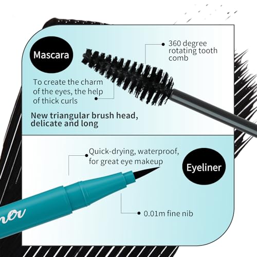 Mascara – Black Mascara & Eyeliner Set – 4D Mascara with Liquid Eyeliner Kit – Longer Thicker Voluminous Lashes – Precision Eyeliner for Striking Eyes – All-Day Wear Makeup Kit – Waterproof