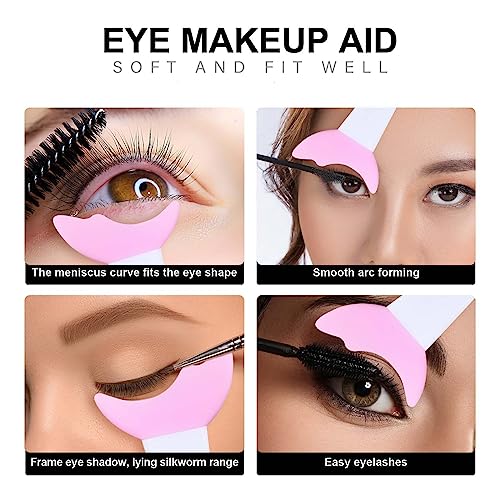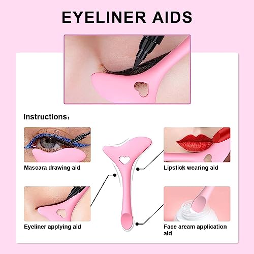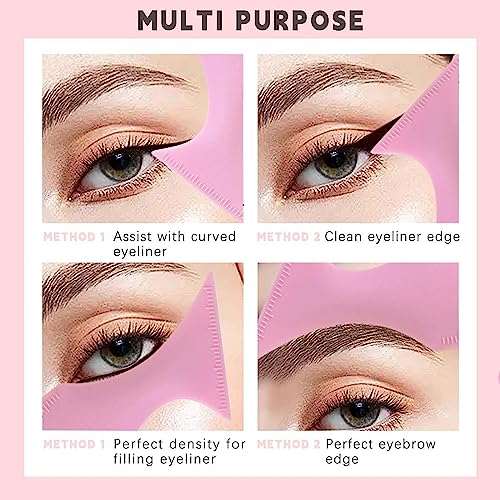 NewBang Eyeliner Stencils 3Pcs Silicone Makeup Tool Winged Tip Eye Liner Shadow Stencil Reusable Aid Applicator Guide Multifunctional for Eyes Eyeshadow Mascara Shield Eyelash Lips Quick Pads-Pink