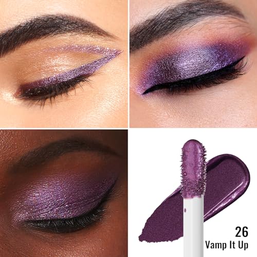 Oulac Liquid Glitter Eyeshadow – Highly Pigmented Purple Eyeshadow, Liquid Eyeshadow & Liquid Eyeliner | Metallic Deepened Amethyst, Blendable Eye Make-up, No Creases, Vegan, 5.4g, Vamp It Up(26)