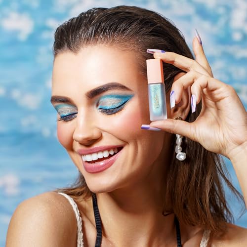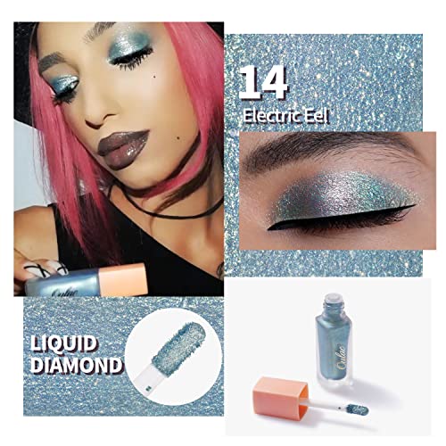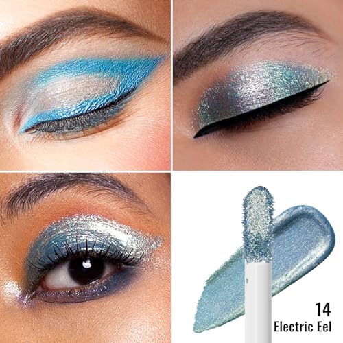 Oulac Liquid Glitter Eyeshadow – Shimmer Eyeshadow & Eyeliner | Shiny Teal with Gold and Emerald Sparkle, Blendable Sparkly Eye Make-up, Crease Resistant, Vegan, Cruelty-Free, 5.4g, Electric Eel (14)