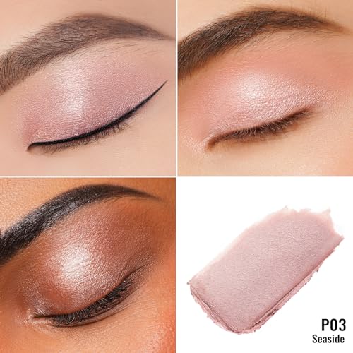 Oulac Shimmer Eyeshadow Pearl Finish| Pink Beige Eyeshadow & Highlighter Duo| Waterproof & Long-Lasting| Longwear Blendable Shimmer Eye Make-up | Vegan | 06g (P03) Seaside
