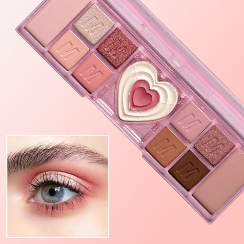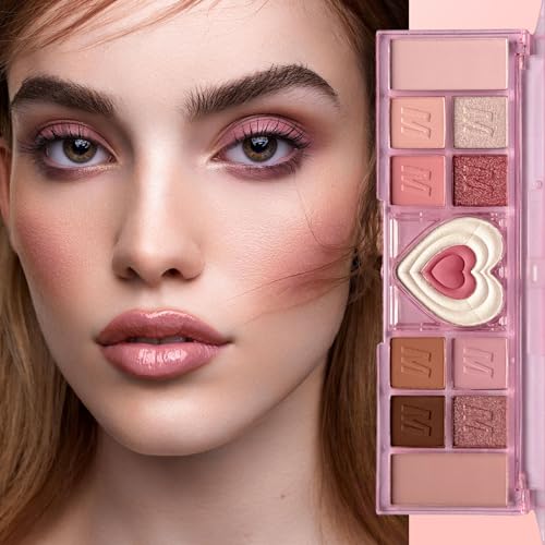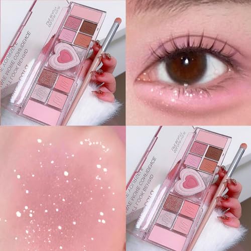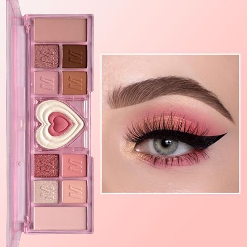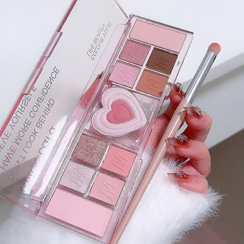 Pink Eyeshadow Palette, 12 Colour Nude Pink Matte Shimmer Glitter Eye Shadow Pallets for Women, Natural Long Lasting Highly Pigmented Eyeshadow Blush Make-Up Palettes