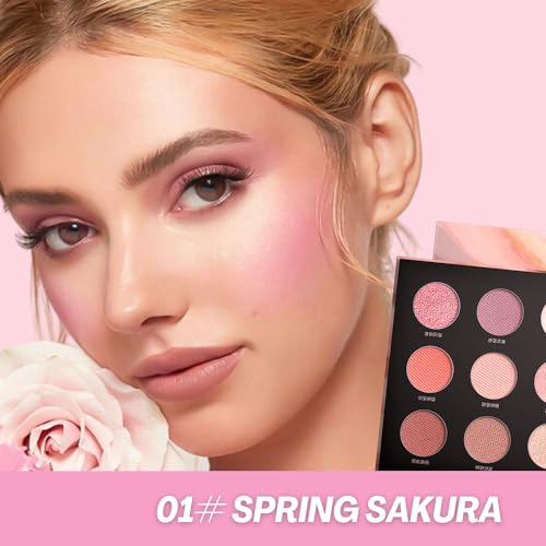 Pink Eyeshadow Palette, 9 Colour Eye Shadow Pallets for Women, Pink Eye Make-up Palettes Matte + Glitter Eyeshadow, Blendable Formula, Vegan & Cruelty-free, Eye Shadows for Women Girls Gifts