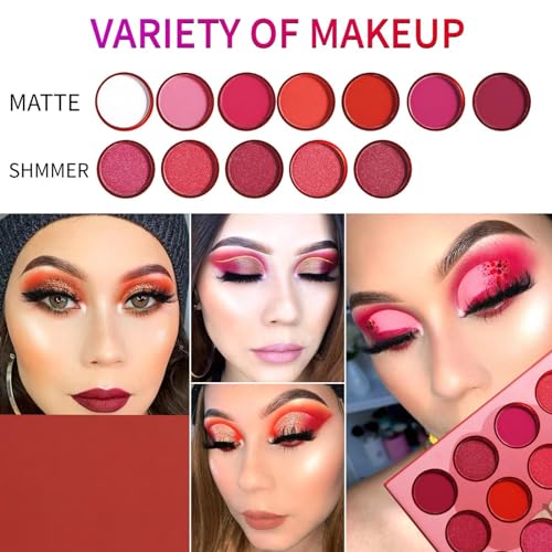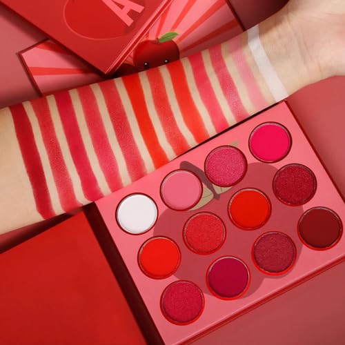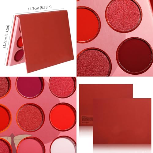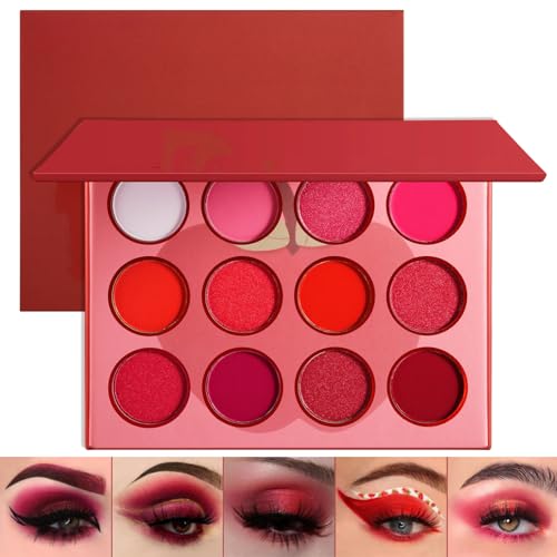 Red Eyeshadow Palettes, 12 Color Red Glitter Eyeshadow Palette Highly Pigmented Mattes Shimmer Christmas Shimmer Eyeshadow Waterproof Velvet Warm Fall Sunset Eye Shadow Pallet Makeup